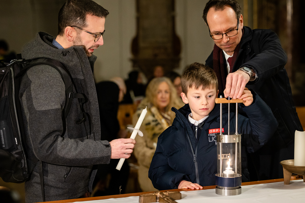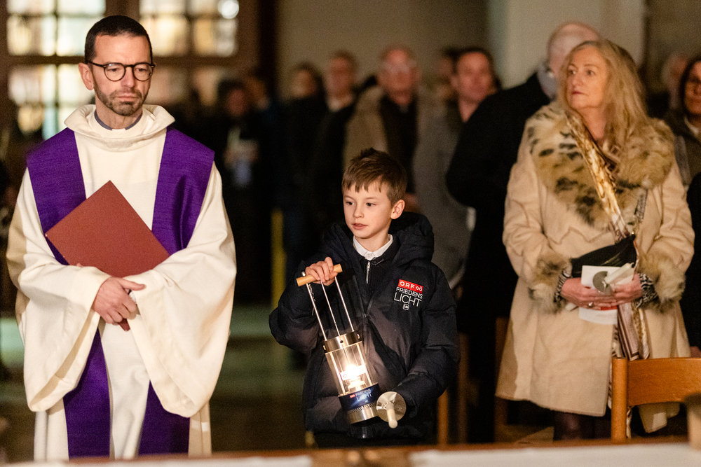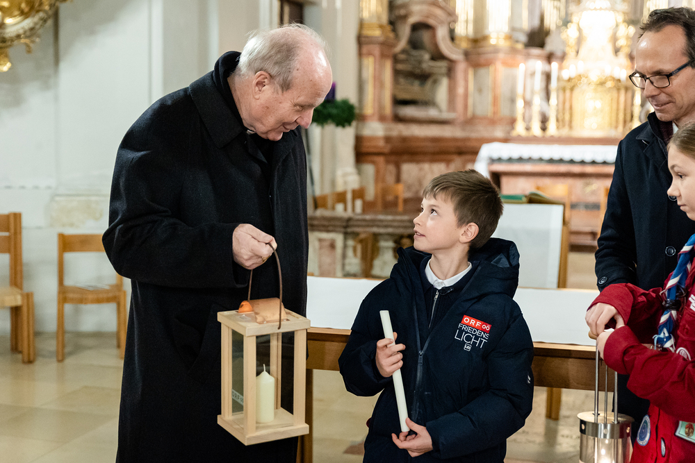 Im Rahmen der Vesper zum Adventempfang für Medienschaffende wurde das ORF-Friedenslicht am Donnerstag, den 12. Dezember 2024, an Christoph Kardinal Schönborn, den Erzbischof von Wien, übergeben. Der neunjährige Matthias Secklehner aus Gschwandt bei Gmunden überbrachte das Licht als Symbol des Friedens in die Kirche des Wiener Priesterseminars. Wir waren mit der Kamera dabei.