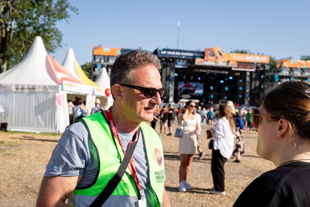 Das ökumenische Team der Festivalseelsorge, bestehend aus 40 speziell geschulten Seelsorgerinnen und Seelsorgern der Römisch-katholischen und Evangelischen Kirche, ist beim diesjährigen Donauinselfest unter dem Motto "Erzähl mir was, ich hör dir zu" im Einsatz. Die Seelsorger, erkennbar an grünen Warnwesten, bieten an einem festen Standort sowie mobil auf dem gesamten Festivalgelände kostenlose Unterstützung für alle Festivalgäste an, unabhängig von deren Religion oder Weltanschauung.Wir waren mit der Kamera dabei.